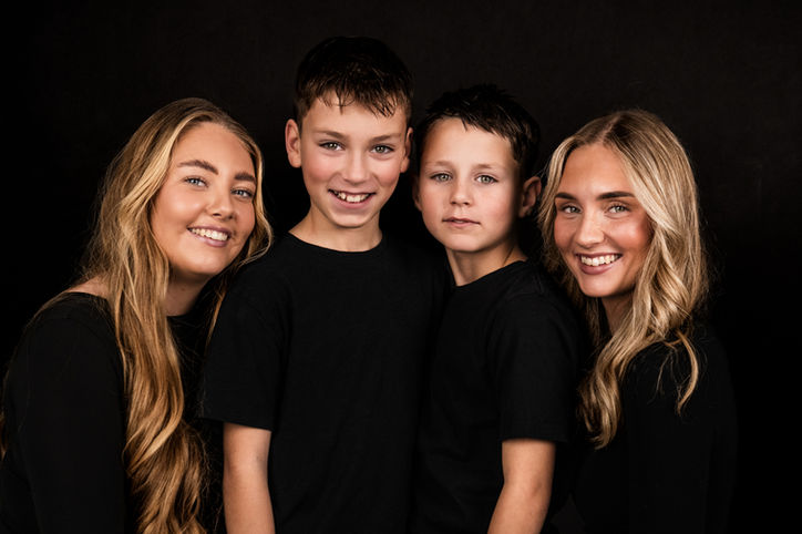 Bij deze reportage maken we de foto's samen voor een zwarte of bruine achtergrond. Het is mogelijk om ook nog enkele individuele portretten te maken.